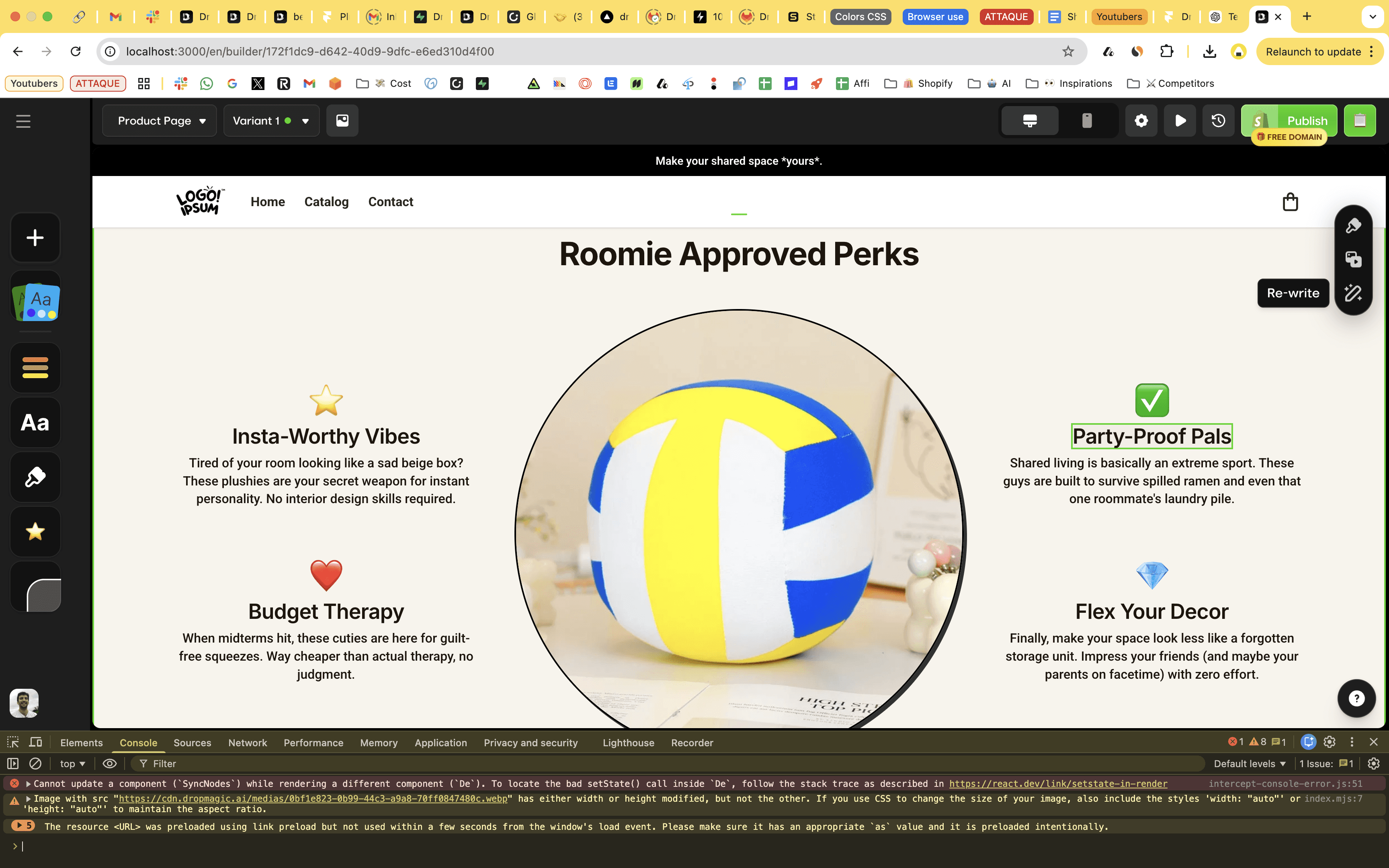 Dropmagic uses persona-based copywriting. Define your target buyer (25-year-old fitness enthusiast, luxury-minded professional, budget-conscious parent) and every headline, description, and CTA is written for them. It's not rewriting — it's creating from scratch.